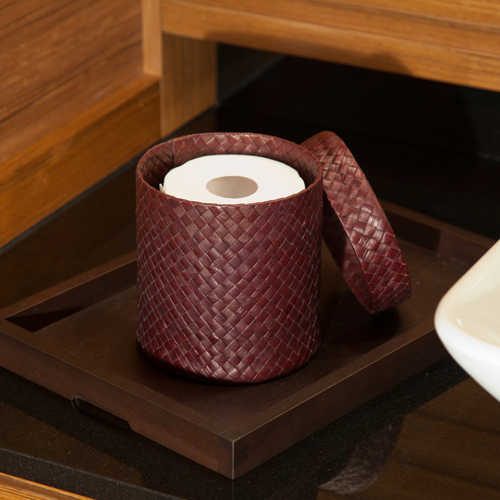 パンダンで作られたトイレットペーパーケース。 補給用のトイレットペーパーをセットするのにもよく、トイレや洗面などのちょっとしたゴミ箱にも使えます。
